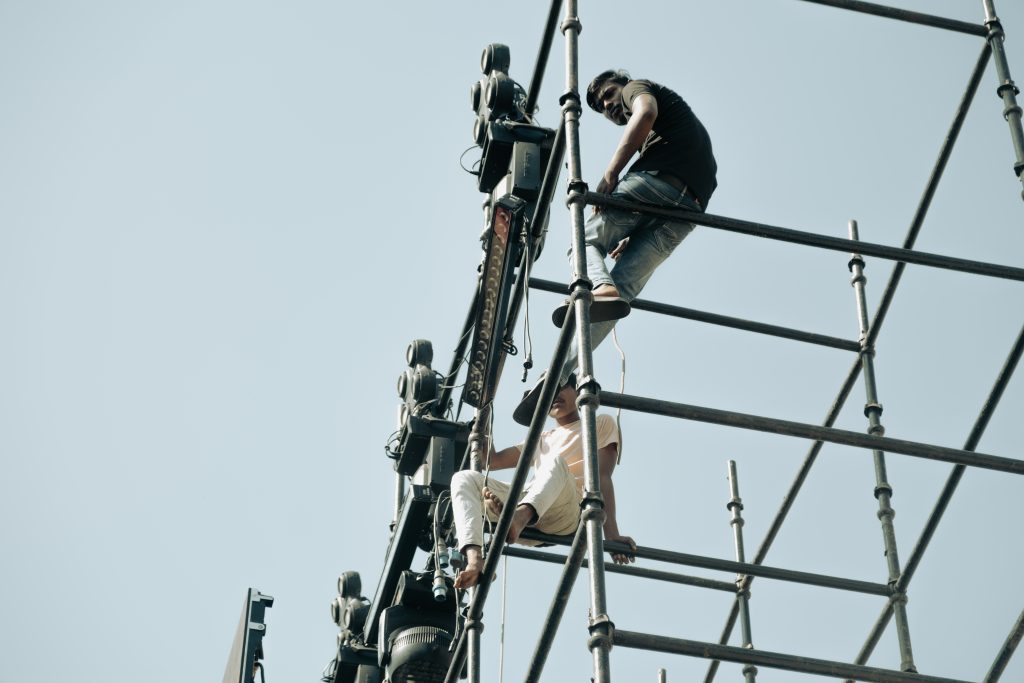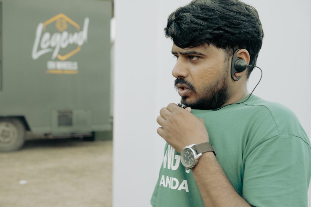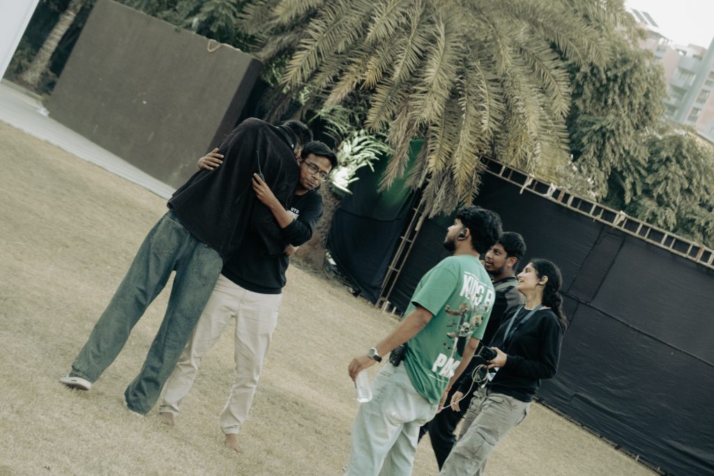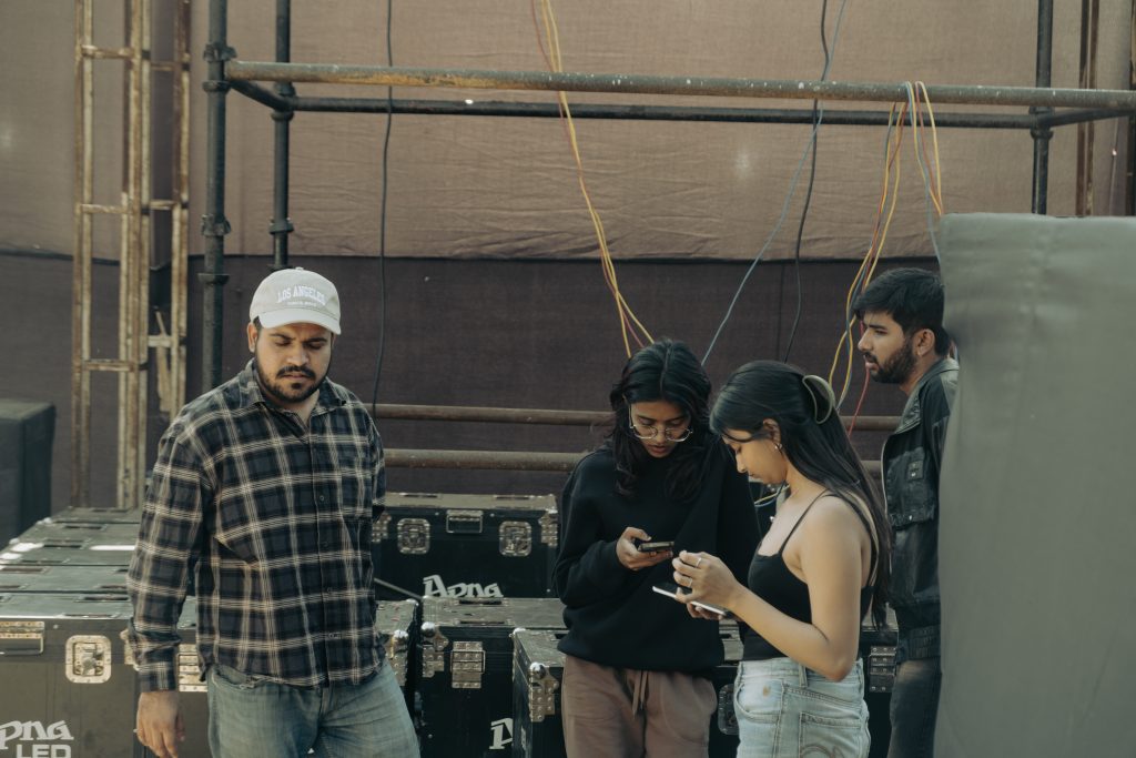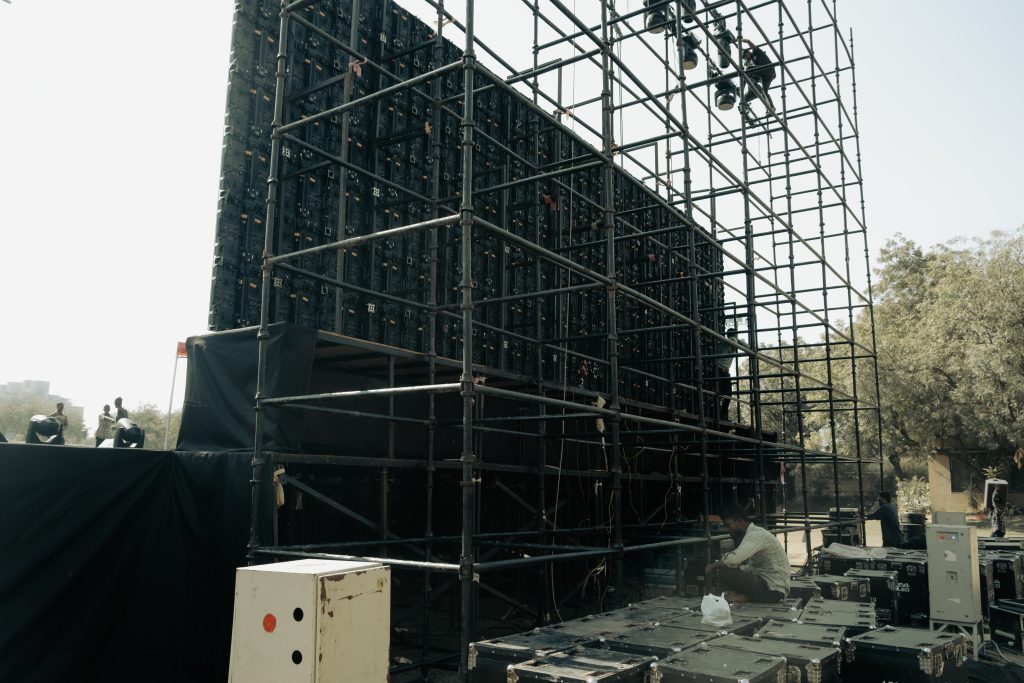 Lights being tested. Cables running like veins. Crew members moving with purpose.